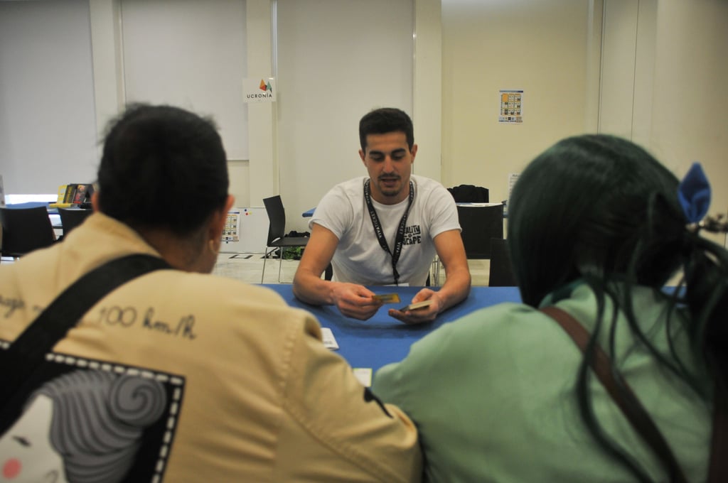 Los pasados 20, 21 y 22 de marzo estuvimos en la FanMediaCon, de la mano de la asociación Asturmeeple, dinamizando Cogito en la zona de juegos de mesa del Palacio de Exposiciones y Congresos Ciudad de Oviedo (el Calatrava) junto a Mario Arze, Ucronia y La Suerte Del 20. El evento arrancó la tarde del viernes y se prolongó durante todo el sábado y el domingo, con un flujo constante de público y partidas.