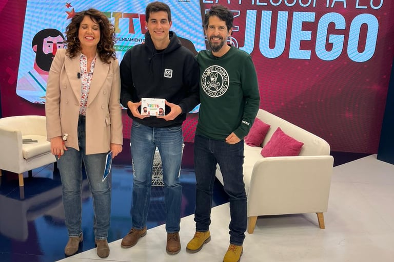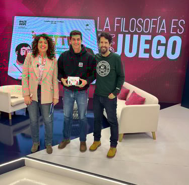 Pocos días más tarde, el 27 de febrero, Cogito dio otro salto y llegó al plató de la TPA, donde se pudo hablar unos instantes del juego y mostrar, esta vez ante toda Asturias, que también se puede filosofar jugando. Fue un honor compartir plató con María del Cueto y Marco Rodríguez.
