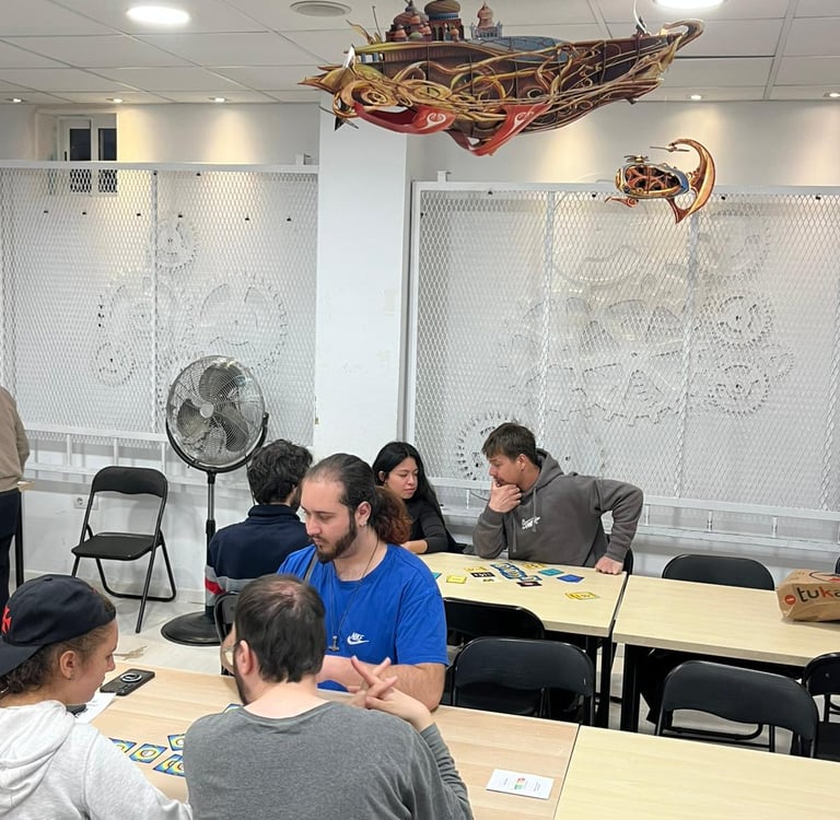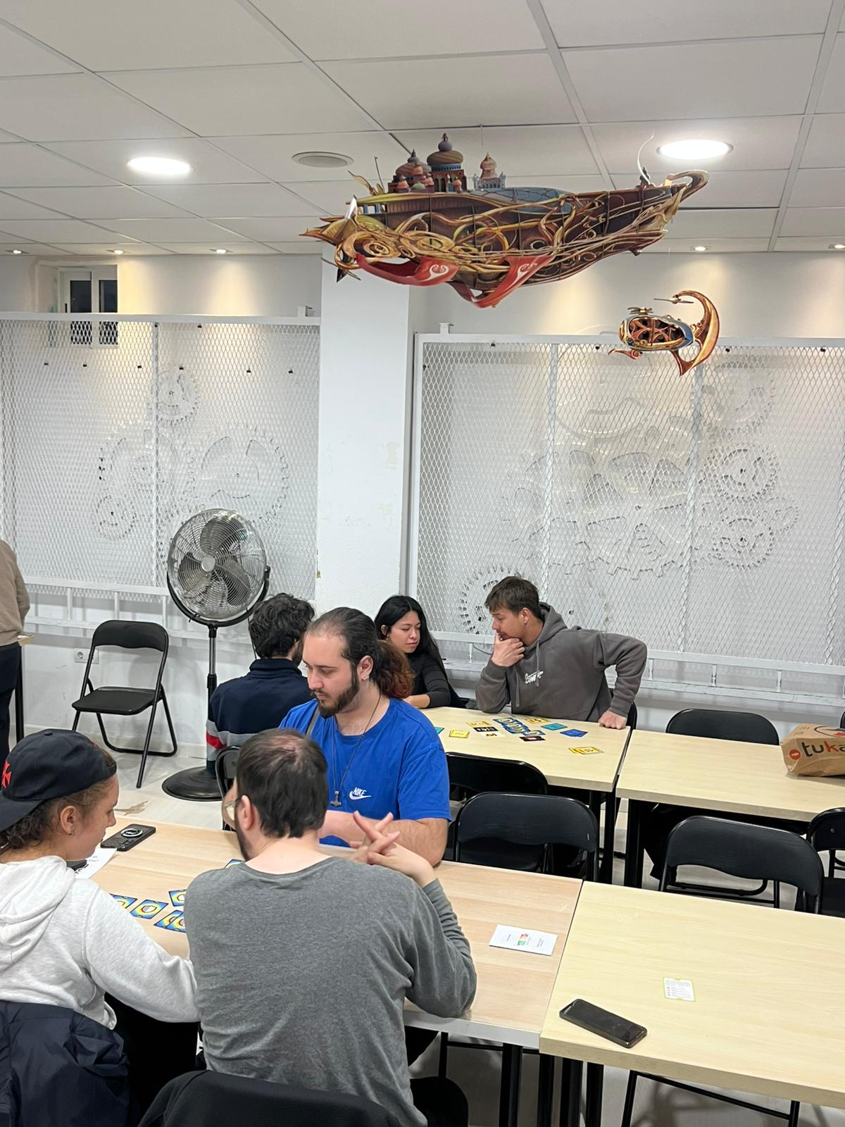 Además de probar el juego, mostramos la evolución del proyecto, desde los primeros prototipos en papel hasta la edición actual, para que se viera el trabajo de diseño y testeo que hay detrás. La experiencia fue muy positiva: el juego funcionó muy bien en mesa y el feedback recogido nos ayudará a seguir puliendo pequeños detalles de manual y modos de juego.