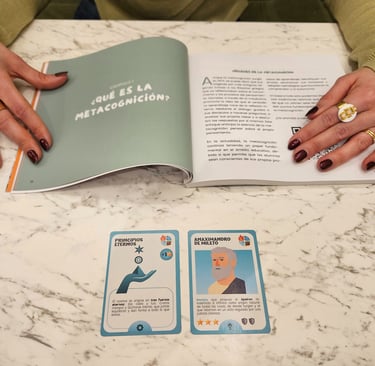 A primera vista, Cogito es un juego de cartas competitivo con una temática filosófica atractiva. Sin embargo, tras estudiar sus mecánicas y su guía de juego, he descubierto que es un "laboratorio de pensamiento" perfecto para entrenar las funciones ejecutivas básicas y las habilidades metacognitivas que describo en mi obra.