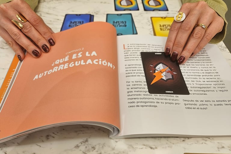 El niño observa al rival de su izquierda (a quien ataca) y debe evaluar: "Mi plan era atacar, pero él tiene un Agente con muchos escudos. ¿Revelo mi carta de Sistema ahora o espero?". Esta capacidad de frenar la impulsividad y ajustar el plan sobre la marcha es lo que en mi libro llamo "Autorregulación".
