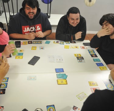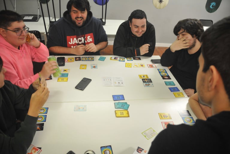 La demostración tuvo lugar aproximadamente de 18h30 a 20h30, se alargó un poco más de lo previsto. Durante la sesión mostramos la evolución del proyecto, desde los primeros prototipos en papel (versión alfa, beta y Print & Play) hasta el juego final alcanzado hasta ahora, para que pudieran ver todo su recorrido. Con las cartas sobre la mesa, fuimos resolviendo dudas, explicando efectos y dejando que los asistentes experimentaran el juego a su ritmo, mientras intercambiábamos preguntas y respuestas sobre qué habían entendido y si se veían jugando a filosofía sin tener "ni idea" previa.